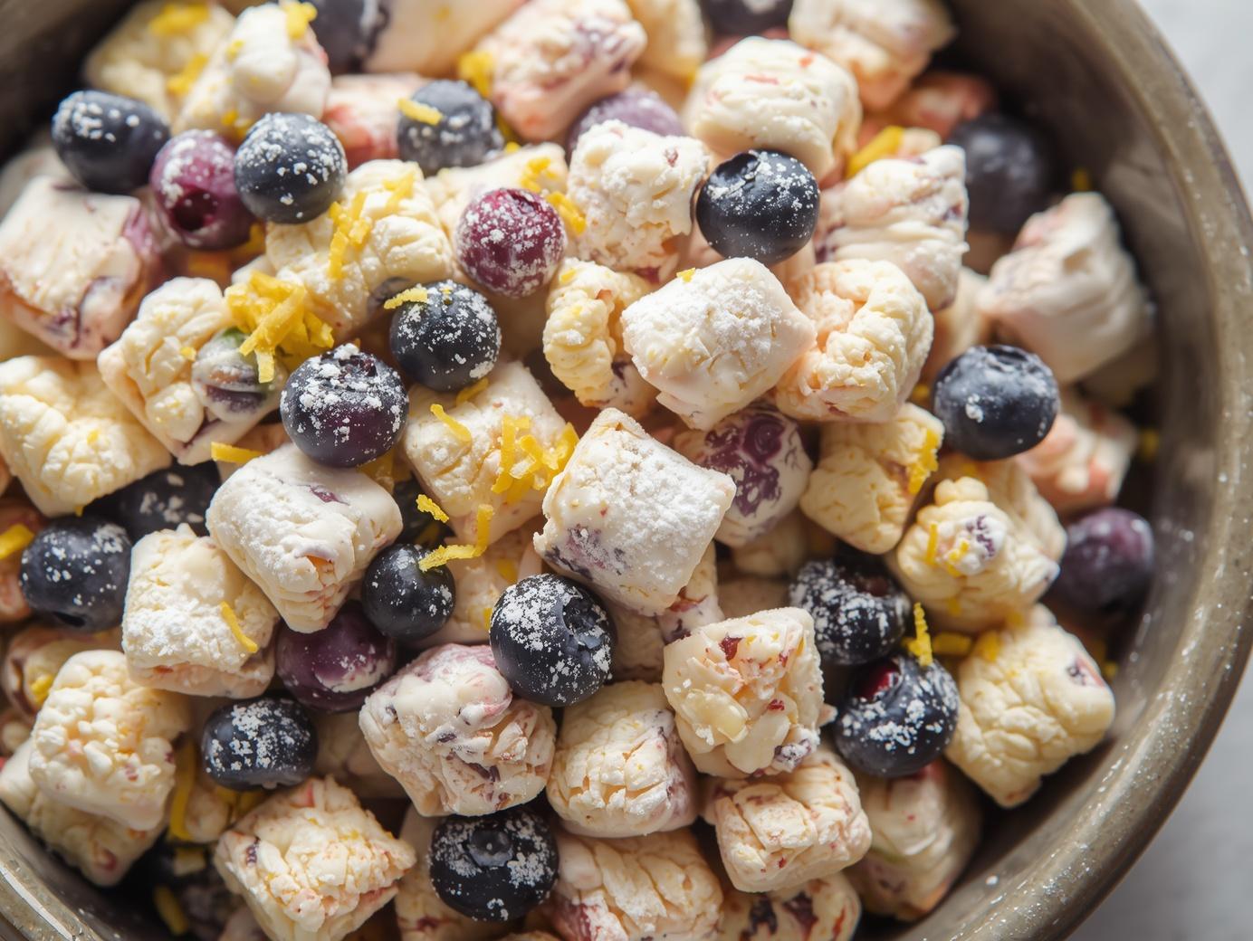 Discover how to make Blueberry Lemon Cheesecake Puppy Chow. A delicious recipe with detailed instructions.