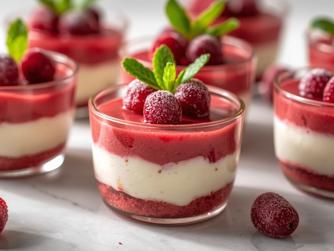 Silky vanilla mousse crowns a vibrant cranberry layer in these elegant dessert cups. Tart cranberries balanced with sweet vanilla create a festive contrast perfect for holiday gatherings or dinner parties.