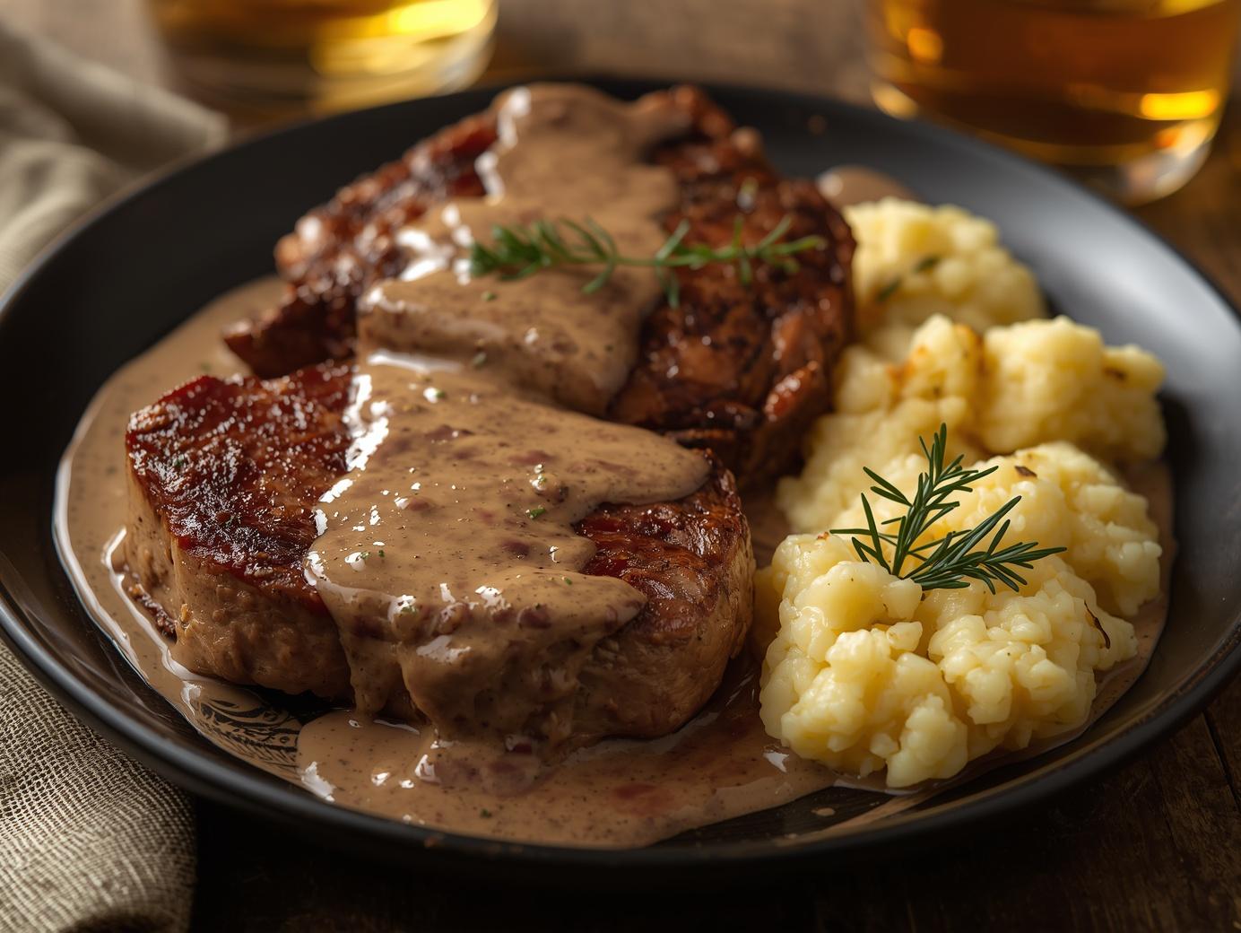 Tender sirloin steaks are seared to perfection and bathed in a rich whiskey cream sauce, then served alongside creamy colcannon—a traditional Irish mash of potatoes and kale. This hearty dish brings t