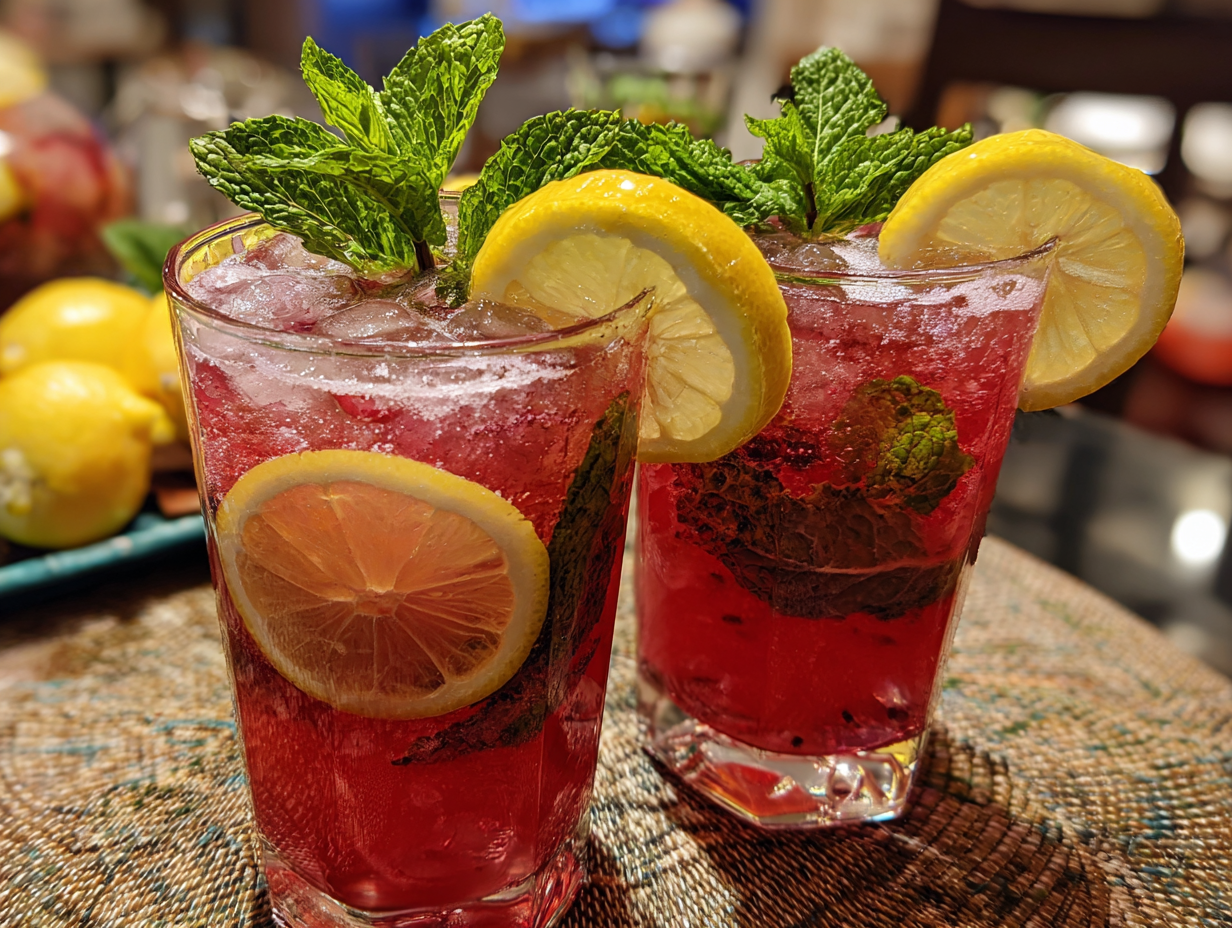 - Garnish each glass with a lemon slice and 2 mint leaves lightly slapped between your palms to release aroma.