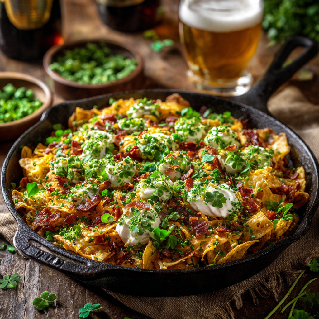 Serve these Irish Nachos as a festive appetizer for St. Patrick's Day parties or as a fun dinner option. Pair with a cold Irish beer or a crisp cider. They're perfect alongside a simple green salad or as part of a larger Irish-inspired spread including soda bread and colcannon.