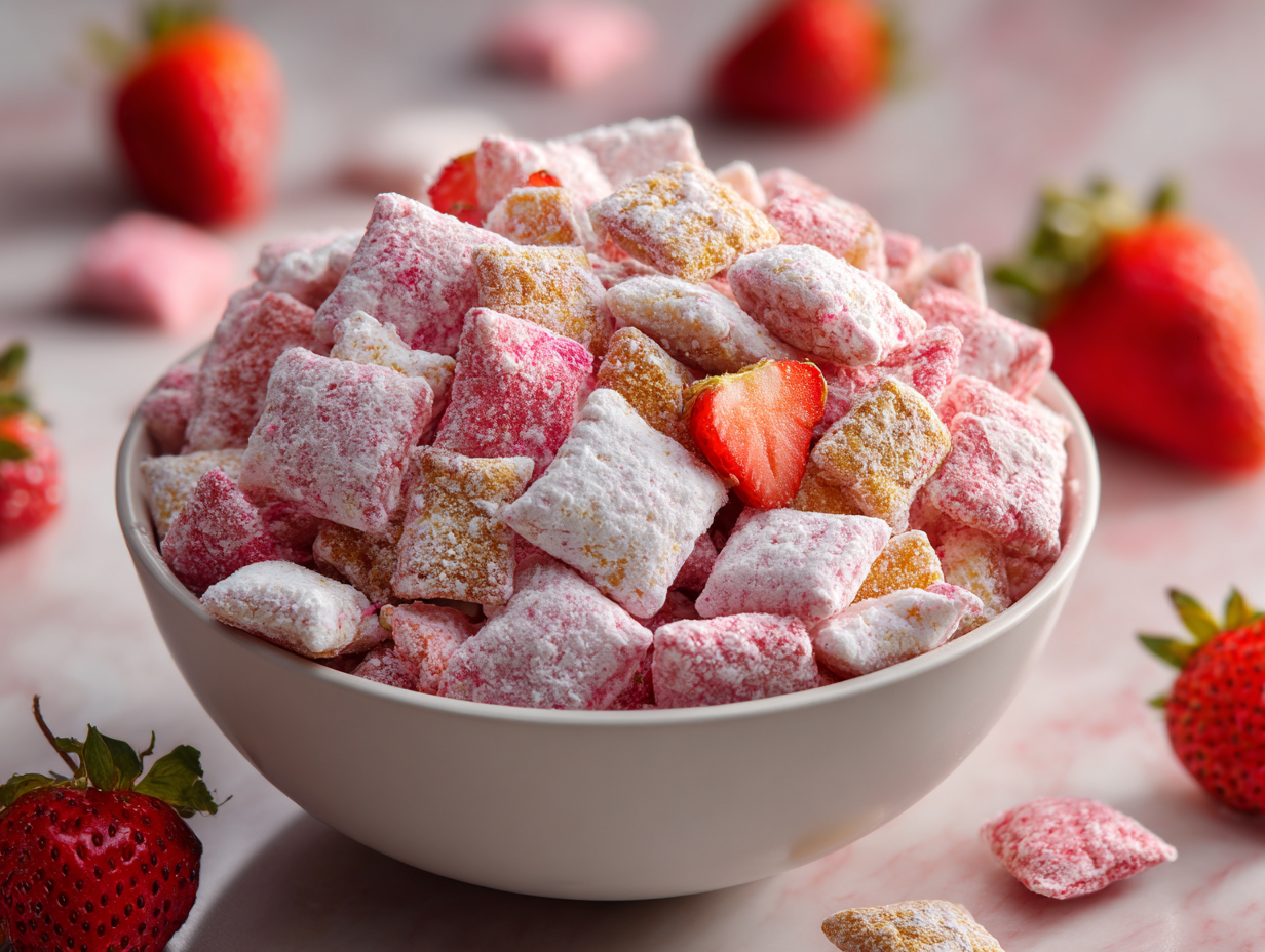 A delightful mix of crispy Rice Chex, chocolate‑covered Oreos, and tangy freeze‑dried strawberries gives this puppy‑chow a sweet‑berry twist. The airy crunch and soft melt‑in‑your‑mouth texture make it perfect for parties, picnics, or an indulgent afternoon treat.