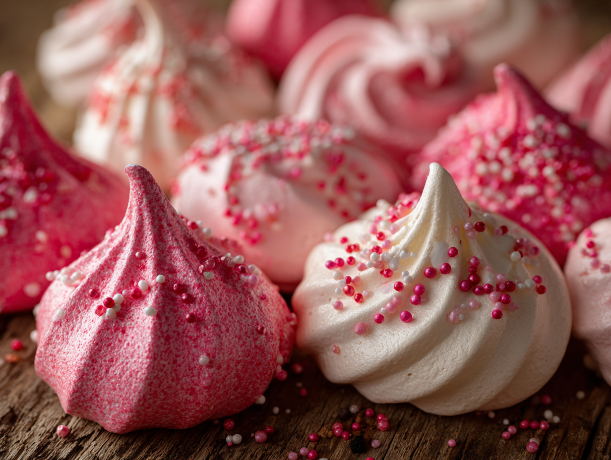 Serve these delicate meringues alongside fresh berries and whipped cream for an elegant dessert, or package them in clear cellophane bags tied with ribbon for thoughtful Valentine's gifts. They're also perfect as a light finish to a romantic dinner or as part of a dessert buffet.